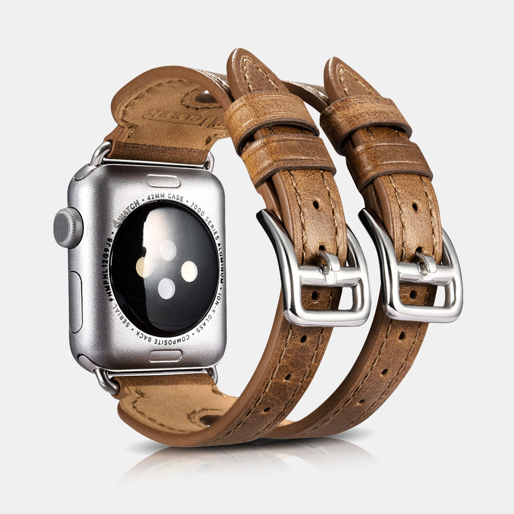 1.纯牛皮制造:由精致的经典真皮牛皮制成,表面采用天然动物线条,手工缝制衬里; 2.透气性强:真皮牛皮孔排出热量,保持双手舒适通风; 3.时尚:双肩带款式,时尚简约; 4.使用寿命长:表带扣由不锈钢制成,可防止腐烂,适合长时间穿戴; 5.两个尺寸:38mm和42mm。