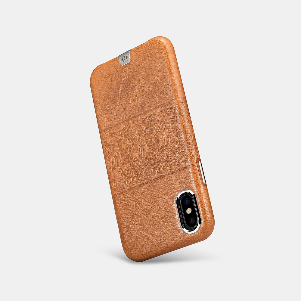 1.采用头层牛皮制成,纯手工制作,款式新颖独特; 2.柔韧干净树膏皮压纹里布呵护手机背部无划伤; 3.电镀按键独立保护,操作更灵敏,避免长时间磨损刮花; 4.高位摄像头保护,真机开模高位贴合,流畅凹边弧形设计,高于摄像头0.2cm; 5.五金激光Logo看起来更奢华,适用于iPhone X。