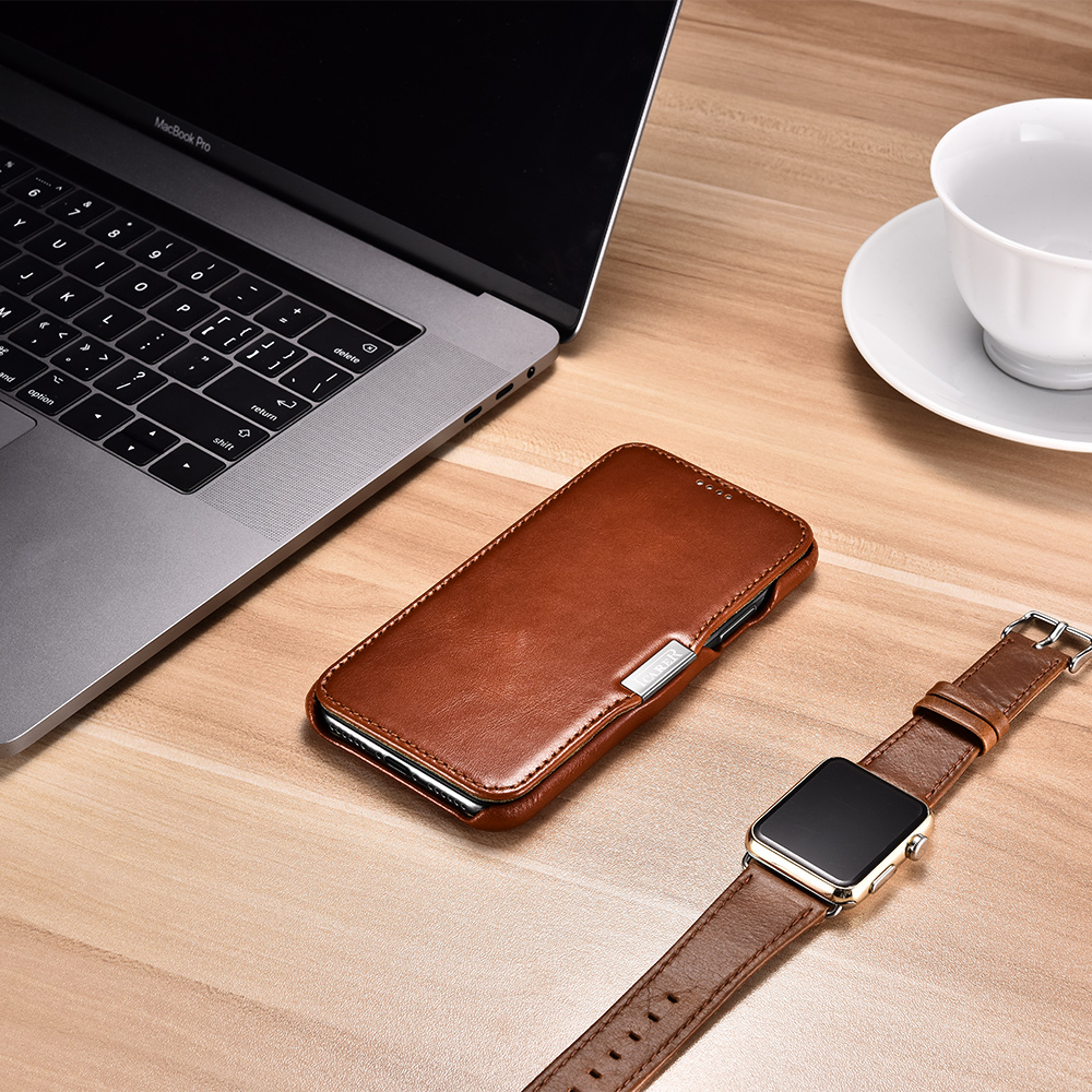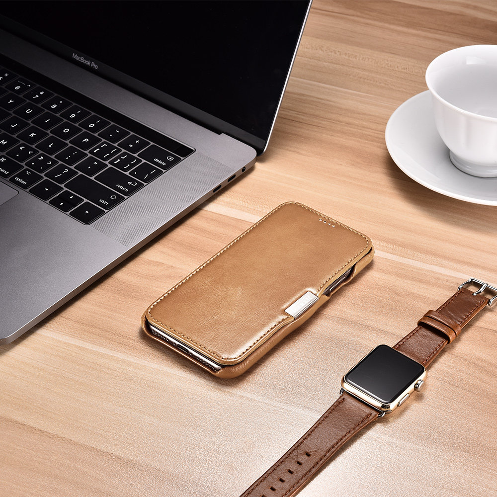 1.由优质的复古系列头层牛皮材料制成,纯手工打造 ,耐用保证; 2.内衬是由超纤皮革制成,防脏和防水; 3.左右翻设计,可合上面盖接听电话,人性化设计,满足消费者使用习惯; 4.优质五金磁扣设计,银灰色五金,激光雕刻logo,坚固耐磨,凸显品牌价。