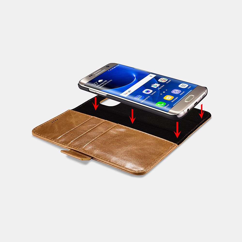 1.由100%真皮牛皮制成,纯手工制作,设计新颖; 2.头层天然原皮,每一张的牛皮的纹路都不一样,毛孔褶皱清晰可见; 3.二合一设计结合钱包款与可拆卸单底手机壳; 4.三个卡槽和一个收纳夹,可放少量现金和各种卡类,是出行的好帮手; 5.独特的侧边开口设计,无需拆卸外壳即可轻松控制手机开关。