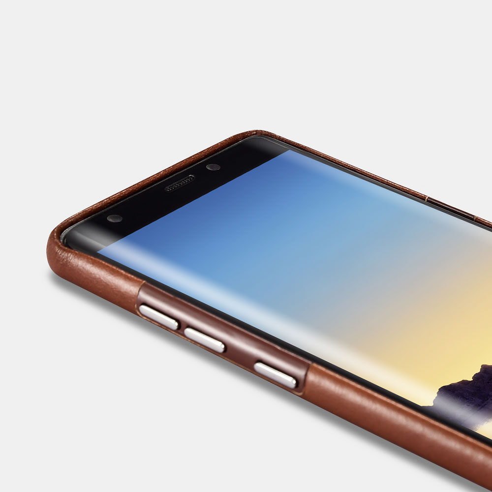 1.采用头层牛皮制成,纯手工制作,款式新颖独特; 2.柔韧干净压纹里布呵护手机背部无划伤; 3.电镀按键独立保护,操作更灵敏,避免长时间磨损刮花; 4.高位摄像头保护,真机开模高位贴合,流畅凹边弧形设计,高于摄像头0.2cm; 5.适用于三星Note 8。