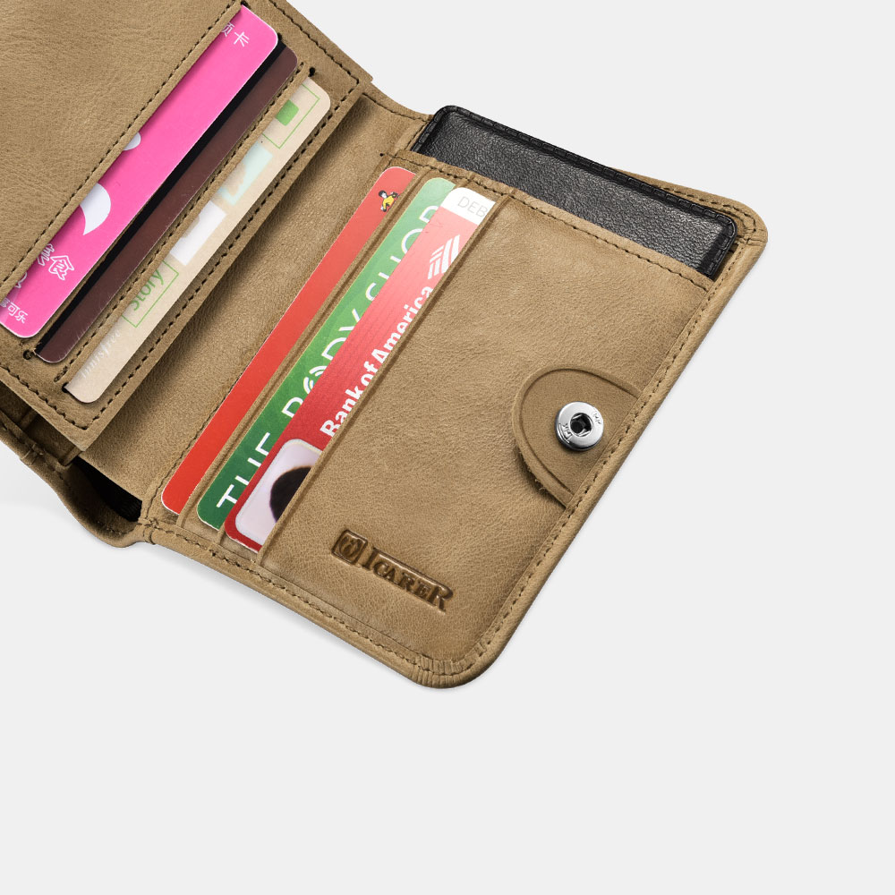 1.头层真牛皮制作,手工制品; 2.多功能基本款,能放入整本驾驶证随身携带,携带3000左右现金,6张卡,2个照片位; 3.能让行驶证随身携带的钱包; 4.两种颜色供选择:浅棕和深棕。