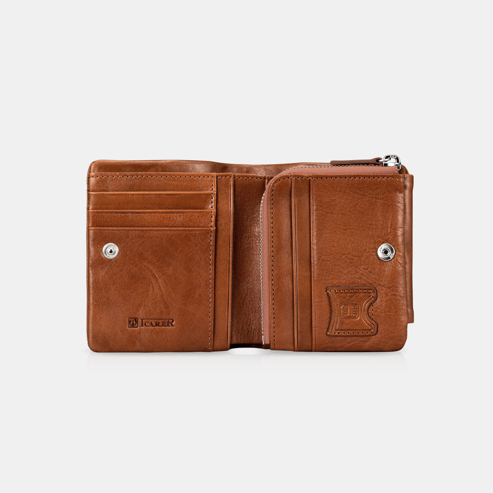 1.头层树膏皮制作,制作精良; 2.具有强大的收纳能力,5000元,8卡位,1照片位,1零钱袋可收纳零钱,票据,卡等各种; 3.缩减掉任何多余的空间,将包包精细到一手掌控,放在口袋里不搁腿,不臃肿; 4.两种颜色供选择:浅棕和深棕。